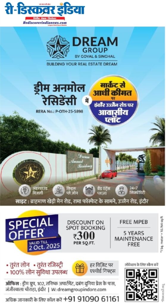 इस फेस्टिवल सीज़न में ड्रीम ग्रुप द्वारा,इंदौर उज्जैन 6 लेन हाईवे पर सभी आधुनिक लाइफस्टाइल और इन्फ्रास्ट्रक्चर के साथ अपनी ड्रीम अनमोल टाउनशिप में प्लॉट बुकिंग पर ग्राहकों को 300 रुपए स्क्वेयर फीट तक की छूट विशेष उपहार के तौर पर दे रहा है। इसके अलावा 2 अक्टूबर तक बुकिंग करने पर पाए कई अन्य विशेष छूट।