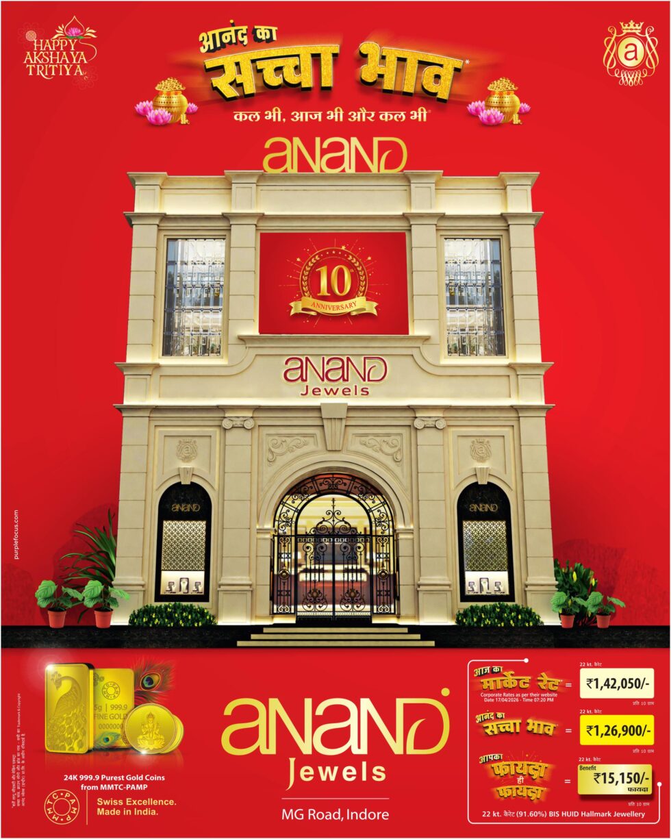 अक्षय तृतीया पर इंदौर के ‘आनंद ज्वेल्स’ की बड़ी सौगात: ‘सच्चे भाव’ के साथ ग्राहकों को ₹15,150 तक का सीधा लाभ!