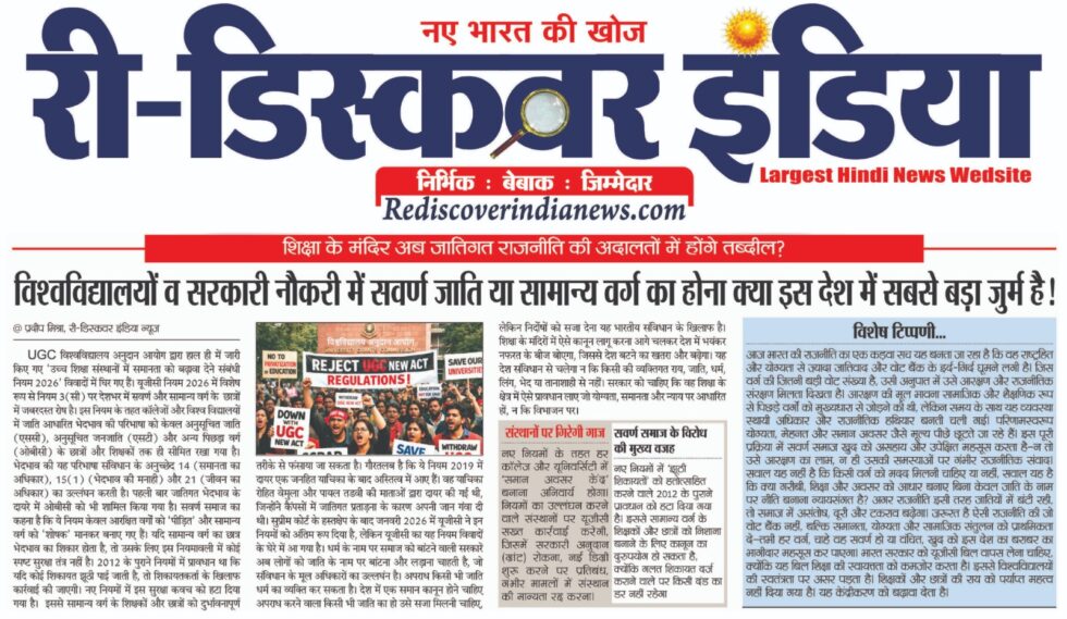 UGC विश्वविद्यालय अनुदान आयोग द्वारा हाल ही में जारी किए गए ‘उच्च शिक्षा संस्थानों में समानता को बढ़ावा देने संबंधी नियम 2026 विवादों में घिर गए हैं। इस नियम के तहत कॉलेजों और विश्व विद्यालयों में जाति आधारित भेदभाव की परिभाषा को केवल अनुसूचित जाति (एससी), अनुसूचित जनजाति (एसटी) और अन्य पिछड़ा वर्ग (ओबीसी) के छात्रों और शिक्षकों तक ही सीमित रखा गया है। भेदभाव की यह परिभाषा संविधान के द्वारा प्रदत्त मौलिक अधिकार समानता का अधिकार, भेदभाव की मनाही और जीवन का अधिकार का उल्लंघन करती है। पहली बार जातिगत भेदभाव के दायरे में ओबीसी को भी शामिल किया गया है।
