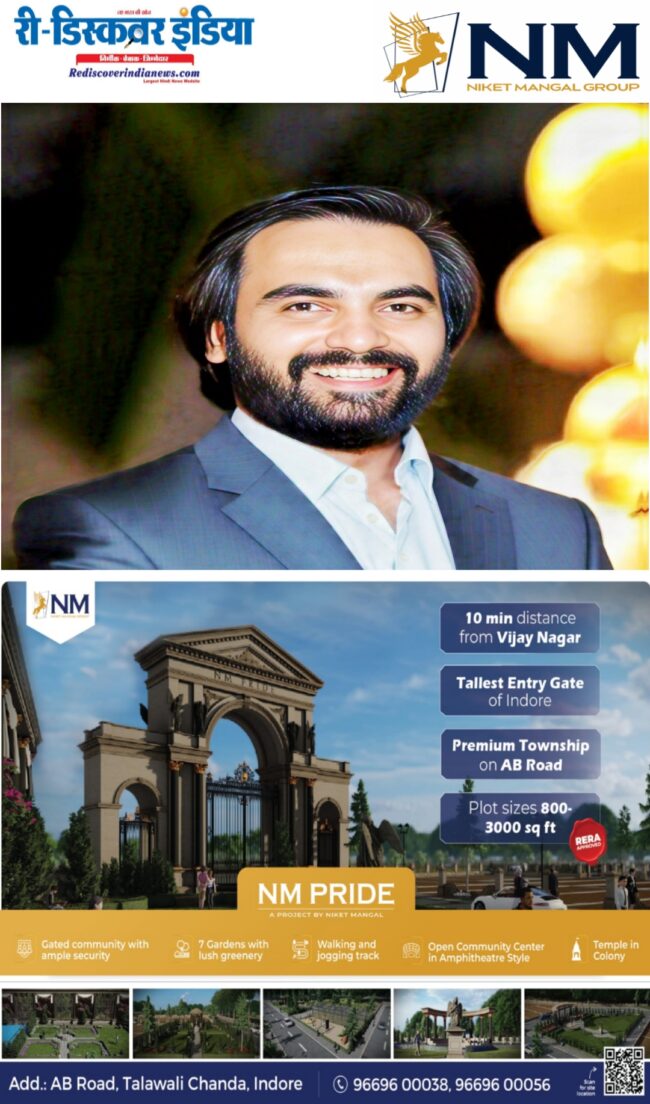 आजकल की आधुनिक लाइफस्टाइल को ध्यान में रखकर बनाई जाने वाली टाउनशिप में नया घर खरीदने वाले परिवारों की सुख – समृद्धि, रिद्धि – सिद्धि, धन – वैभव और सौभाग्य से अनवरत वृद्धि के लिए टाउनशिप के सौभाग्य शाली प्रवेश द्वार की अनिवार्यता, धार्मिक और वास्तु मान्यताओं के अलावा इसके वैज्ञानिक कारणों की गंभीरता को समझा इंदौर के अनुभवी और इनोवेटिव युवा बिल्डर निकेत मंगल ने जिनके भव्य, आधुनिक लाइफस्टाइल की सभी आवश्यकताओं और जरूरतों से परिपूर्ण टाउनशिप हैं “NM प्राइड टाउनशिप”।