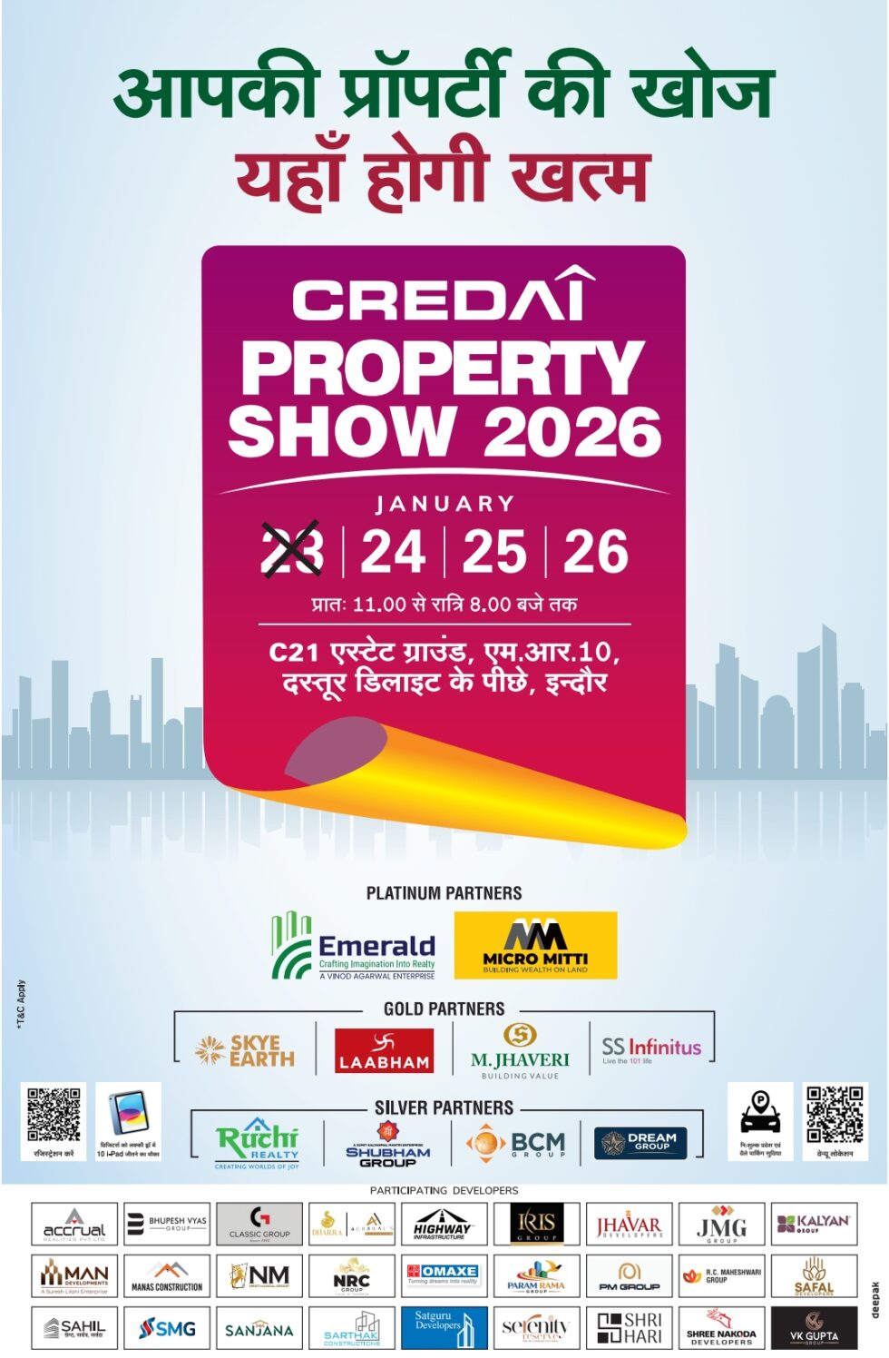 इंदौर में रियल एस्टेट के महाकुंभ ‘क्रेडाई प्रॉपर्टी शो 2026’ का भव्य आगाज। एक ही छत के नीचे 200 से ज्यादा रियल एस्टेट प्रोजेक्ट!