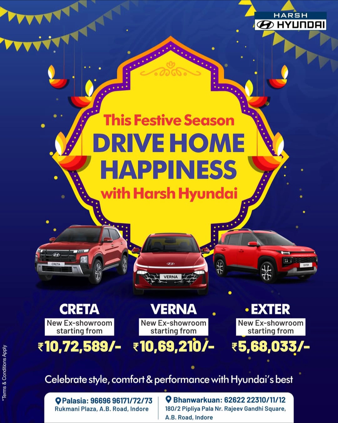 तो फिर देर किस बात की है आइये इस धनतेरस और दिवाली के मौके पर चलते है “हर्ष हुंडई”